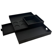 | • | All shapes, sizes, embossing, and customized color/finish available for all caddies, trays, and room accessories |